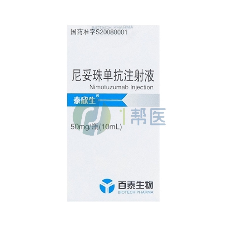 尼妥珠单抗可引起轻度发热、血压下降、恶心、呕吐、头晕、皮疹、发冷、血压降低、虚弱、头痛、贫血、肢端青紫等不良反应,并不不会引起甲状腺肿大。