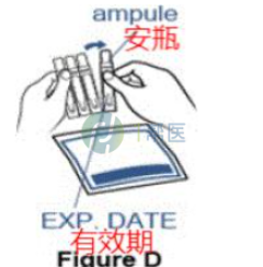 ②检查印在安瓿瓶上的有效期 (exp.)(见图D)